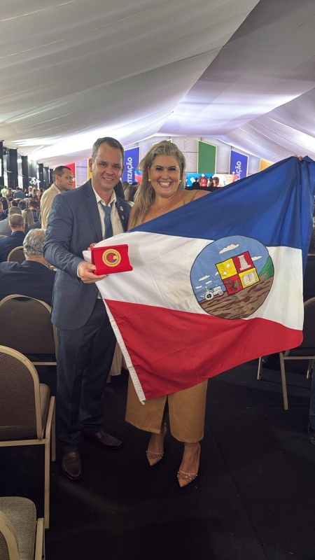Quatro Pontes, 23 de março de 2026 – O prefeito de César Seidel (Canela) e a secretária municipal de Educação, Franciele Becker, estiveram em Brasília para participar da cerimônia oficial de entrega do Selo Ouro - Selo Nacional Compromisso com a Alfabetização – Edição 2025.