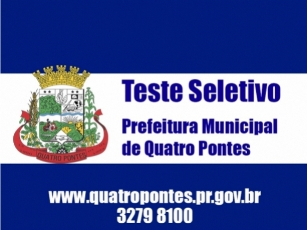 Está disponível no Diário Oficial Eletrônico do Município de Quatro Pontes em www.quatropontes.pr.gov.br o resultado da prova objetiva do Teste Seletivo. As vagas foram para estagiário Ensino Médio, estagiário Ensino Superior, estagiário Ensino Superior – Ciências Contábeis, Agente Comunitário de Endemias, Educador Infantil e Professor. As provas ocorreram no último dia 20.
