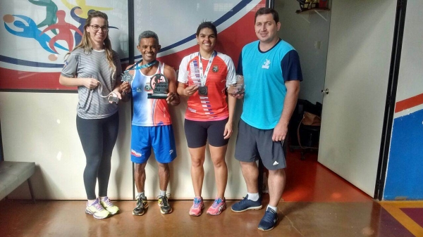 Na foto, estão acompanhados pelo Diretor do Departamento de Esportes, Jean Caramore Steltter e pela professora Alessandra Lunkes.
