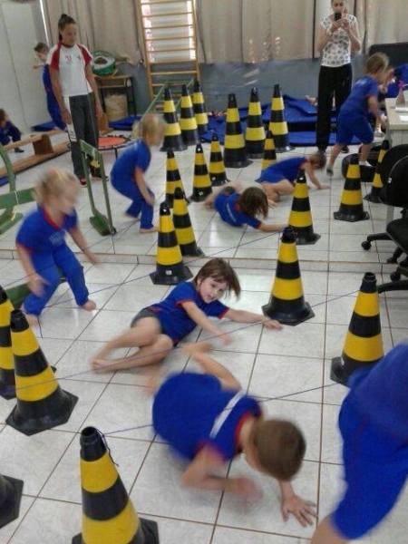 As aulas de Educação Física do Jardim I, da Escola Municipal Dona Leopoldina, estão ainda mais animadas. Os alunos estão participando do Circuito Motor que é um instrumento pedagógico que oportuniza trabalhar com um grande número de alunos ao mesmo tempo, proporcionando a todos executarem os movimentos de acordo com suas capacidades individuais e ampliar suas habilidades motoras.