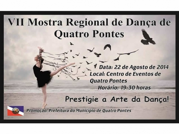 A VII Mostra Regional de Danças já possui confirmada a participação dos municípios de Mercedes, Pato Bragado, Maripá, Itaipulândia, além dos alunos de jazz e dança alemã da Casa da Cultura de Quatro Pontes.
