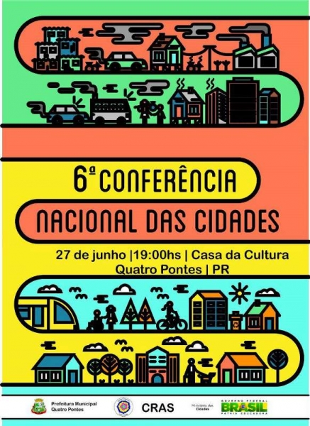 Quatro Pontes vai sediar na segunda-feira, dia 27 de junho, às 19 horas, na Casa da Cultura, a 6ª Conferência Nacional das Cidades. Para essa edição, foi escolhido o tema “Função Social da Cidade e da Propriedade”, que expressa a importância do interesse coletivo. O lema “Cidades Inclusivas, Participativas e Socialmente Justas” proclama o caráter igualitário e equânime qualificando o significado do tema.