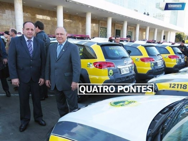 Aconteceu na última terça feira (27) o repasse de 466 viaturas através do Programa Paraná Seguro do Governo do Estado. O município de Quatro Pontes foi contemplado com uma unidade da marca Renault, modelo Duster, toda equipada, que irá servir para combater a criminalidade e proporcionar mais segurança aos cidadãos.