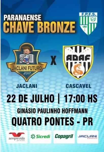 Neste sábado dia 22 de julho, Quatro Pontes será palco de uma grande partida de Futsal. Válida pelo Campeonato Paranaense, Série Bronze, o confronto é entre as equipes do Jaclani Futuro de Marechal Cândido Rondon e ADAF de Cascavel.