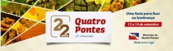 #4PONTES22ANOS - Festejos do 22º aniversário de Quatro Pontes começam hoje