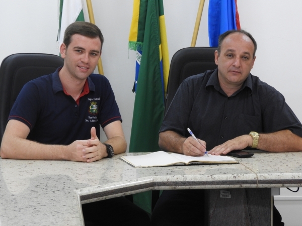 Aconteceu na manhã desta terça-feira (02) na sala de reuniões da Prefeitura Municipal, a transmissão do cargo de Prefeito para Vice. Na oportunidade o Prefeito João Laufer que entrará em período de férias, desejou ao Vice-Prefeito Tiago um bom trabalho frente aos atos do executivo.