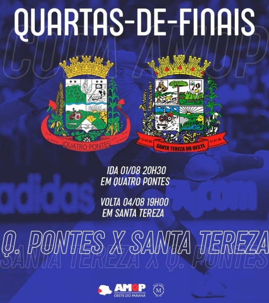 Com a classificação nas quartas de final da 2ª Copa Amop de Futsal Masculino, o novo desafio de Quatro Pontes é contra Santa Tereza do Oeste. O jogo de ida está marcado para quarta-feira (1º), às 20h30, no Ginásio de Esportes Paulinho Hoffmann.
