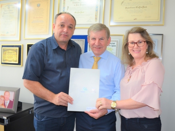 Em Curitiba, o prefeito João Laufer, acompanhado da secretária de Desenvolvimento Social, primeira-dama Odete Laufer, recebeu nesta quarta-feira (05) a autorização de homologação para aquisição de um veículo. O documento foi entregue pelo deputado estadual Elio Rusch, que viabilizou o recurso junto ao Governo do Estado.