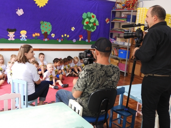 A diretora do Cmei, Angélica Borelli Fridrich, comemora a conquista conjunta. “É nossa porque envolve desde as zeladoras, estagiárias, educadoras até a equipe da Secretaria de Educação. Os alunos que participaram das gravações são matriculados no Maternal II e realizaram o projeto no ano de 2018, coordenados pelas educadoras Maria Elena Koch, Paula Vergutz e Maura da Costa da Silva”, expõe.