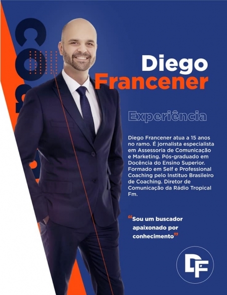 Diego Francener diz que o coaching proporciona uma expansão de mindset, ou seja, a pessoa entra em um processo de profunda imersão e o contato com as ferramentas detona uma verdadeira mudança de mentalidade nas mais diversas áreas da vida, conquistando metas em um curto espaço de tempo. O workshop, comenta, “antecede um treinamento de imersão, que será realizado no dia 13 de julho, e tem o intuito de despertar as pessoas para uma vida épica e abundante em todas as áreas. Esta é uma modalidade de treinamento que faz com que as pessoas mergulhem nos mares mais profundos da vida, seja na família, carreira, estudos, área financeira ou fitness, onde todos têm crenças e limitações, que por vezes impedem o crescimento nestas e outras áreas”.