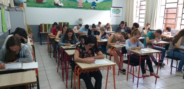 Foram aplicadas ontem (14) as provas do teste seletivo 01/2019 para preenchimento de cadastro de reserva para contrato temporário de estagiários na Prefeitura de Quatro Pontes, junto à Escola Municipal Dona Leopoldina. Dos 87 estudantes inscritos, houve o registro de 18 faltantes.