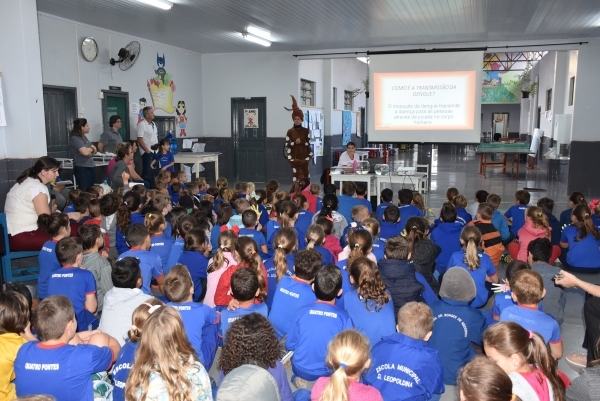 Teve início na manhã de hoje (19) e continuará à tarde uma importante ação contra a dengue em Quatro Pontes. A iniciativa engloba palestras e passeatas promovidas pela Secretaria de Saúde, por intermédio das agentes de endemias, com todos os alunos da Escola Municipal Dona Leopoldina, mediante apoio da Secretaria de Educação, Cultura e Esportes.