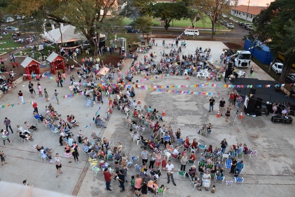 Público superior a duas mil pessoas prestigiou ontem (30), em Quatro Pontes, a 3ª edição da Festa Junina à Céu Aberto na Praça Cristo Rei, organizada pela prefeitura. O evento reuniu a comunidade local, contemplando desde crianças, jovens, adultos até idosos, incluindo visitantes. Toda a decoração foi feita por servidores municipais, que também auxiliaram na produção de pipoca e pinhão, distribuídos de graça durante o evento, e cooperaram com a organização e realização de brincadeiras e apresentações culturais.