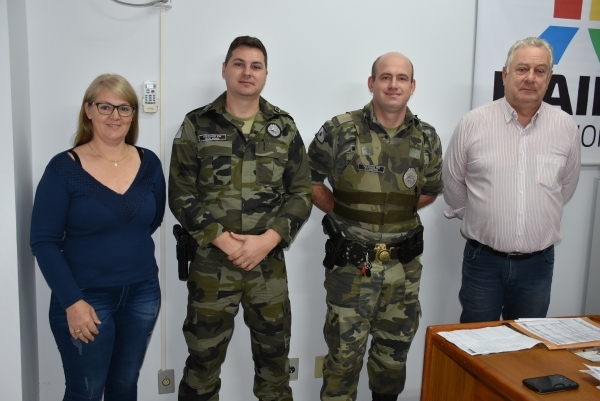 Com o intuito de realizar um trabalho preventivo, mediante orientação, os soldados da base de Toledo, Evandro Spier e Solano Niedermeyer, da equipe da Polícia Ambiental - Força Verde, visitaram hoje (15) a Prefeitura de Quatro Pontes, buscando estreitar a relação. Eles se reuniram com o secretário de Desenvolvimento Econômico, Rudi Kuns, e a diretora do Departamento de Meio Ambiente, Rosa Maria Sulzbach.