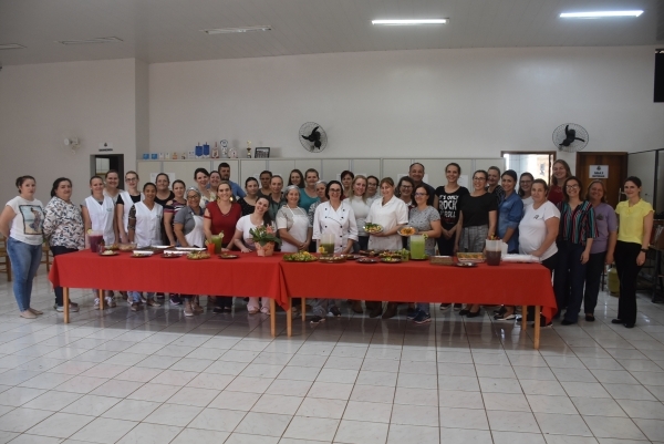 O evento, que aconteceu na Casa da Cultura, foi aberto com café da manhã, reunindo a secretária de Educação, Cultura e Esportes, Araceli Basso Tauchert, a secretária de Desenvolvimento Social, primeira-dama Odete Laufer, a nutricionista Jussara Gheller, além de cozinheiras, coordenadoras da alimentação escolar e nutricionistas de Quatro Pontes, Toledo, Marechal Cândido Rondon, Ouro Verde do Oeste, Mercedes, Entre Rios do Oeste, Pato Bragado e São José das Palmeiras, somando 33 profissionais.