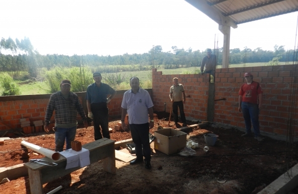 As obras junto ao barracão da Associação de Moradores da Linha Água Verde, interior de Quatro Pontes, seguem em pleno desenvolvimento. No momento, funcionários da Positivo Construtora Ltda., empresa vencedora da licitação, realizam o fechamento em alvenaria. Nesta semana, o prefeito João Laufer esteve no local para conferir todos os serviços.