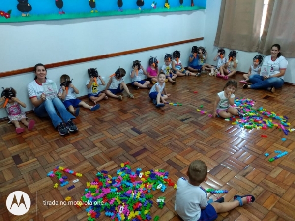 Por outro lado, com as turmas do maternal I e II aconteceu uma breve conversa, ocasião em que foram enfatizados os cuidados que cada um deve ter para evitar a proliferação do mosquito Aedes aegypti, transmissor da dengue, destacando a importância de ajudar os pais na organização de brinquedos, sem deixar expostos para não acumular água. Estes alunos também receberam lixeirinhas para carros com folders informativos, além de uma máscara de mosquito como forma de orientação.