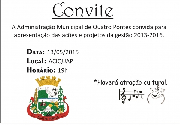 Munícipes moradores do Bairro Tropical estão convidados para apresentação da ações e projetos da gestão 2013-2016.