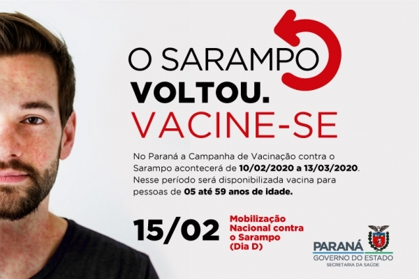A vacina contra o sarampo é gratuita e faz parte do Calendário Nacional de Vacinação. A Sesa orienta para que a população fique atenta às datas da carteira de vacinação e aos registros de doses. A dose zero deve ser aplicada em crianças entre seis e onze meses. A primeira dose deve ser aos 12 meses de vida com a vacina tríplice viral (que previne sarampo, caxumba e rubéola) e a segunda dose aos 15 meses de vida com a vacina tetra viral (que previne sarampo, rubéola, caxumba e varicela/catapora).