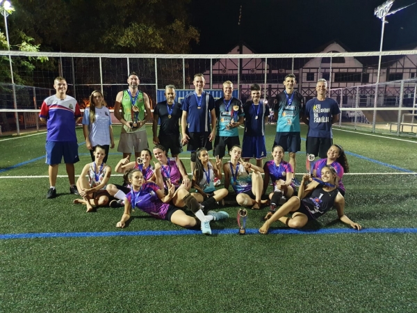 As equipes de vôlei em trio CMT (Cleomar, Marco e Tiago), na categoria masculino, e Carga Pesada (Alana, Esthefany e Nicoly), na categoria feminino, são as campeãs dos Jogos Mais Verão 2020, organizados pelo Departamento de Esportes de Quatro Pontes. O evento foi promovido na sexta-feira (13) e ontem (15) na arena poliesportiva, junto à Praça Cristo Rei.