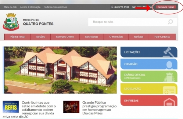 Foi implantado há alguns dias no site da Prefeitura Municipal de Quatro Pontes, a Ouvidoria Digital. O espaço tem como objetivo servir de um canal de comunicação entre Poder Público e munícipe. As primeiras sugestões já estão chegando e os problemas pontuados já estão sendo solucionados.