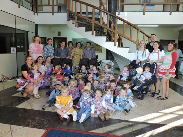 Trajados e animados, os alunos do Cmei Cantinho Feliz do Município de Quatro Pontes realizaram apresentação junina na Prefeitura hoje (24) pela manhã.