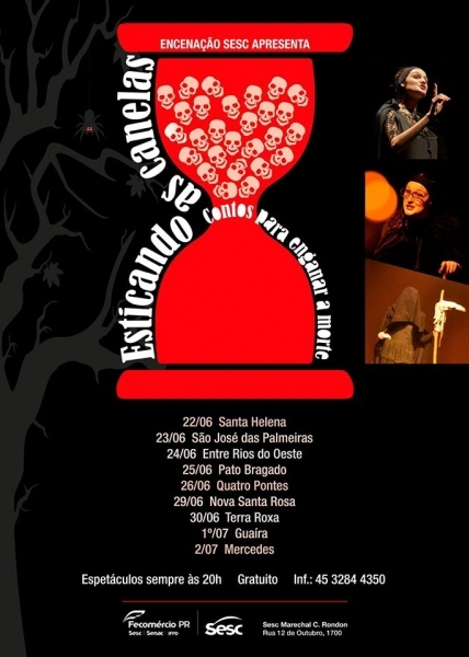 O SESC em parceria com o setor de Cultura do Município de Quatro Pontes trazem hoje (26) a apresentação de uma peça teatral chamada “Esticando as Canelas – Contos para enganar a morte”.