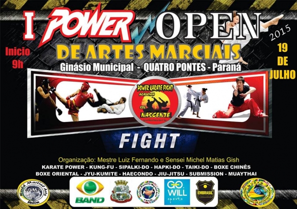 Acontecerá no próximo dia 19 de julho, às 9 horas, no Ginásio de Esportes do Complexo Escolar em Quatro Pontes, o I Power Open de Artes Marciais.