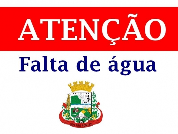 O Sistema de Abastecimento de Quatro Pontes comunica que haverá falta de água nesta quinta-feira (16) em Quatro Pontes por motivo de manutenção  na rede. Pede-se economia de água.