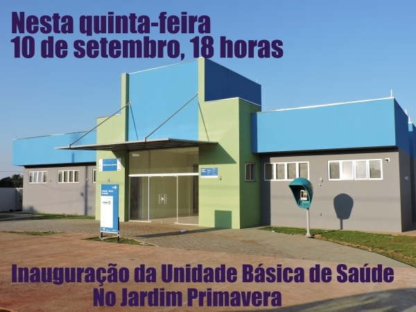 Dando sequência a série de inaugurações, acontecerá nesta quinta-feira (10) às 18 horas, a inauguração da Unidade Básica de Saúde, no Jardim Primavera, em Quatro Pontes.
