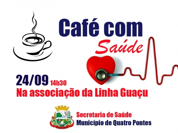 Com o objetivo de levar informações sobre saúde aos moradores da área rural, a Secretaria de Saúde de Quatro Pontes realiza o “Café com Saúde”. Nesta quinta-feira (24) o evento acontecerá a partir das 14h30 aos moradores da Linha Guaçu. O “Café com Saúde” será na Associação de Moradores.