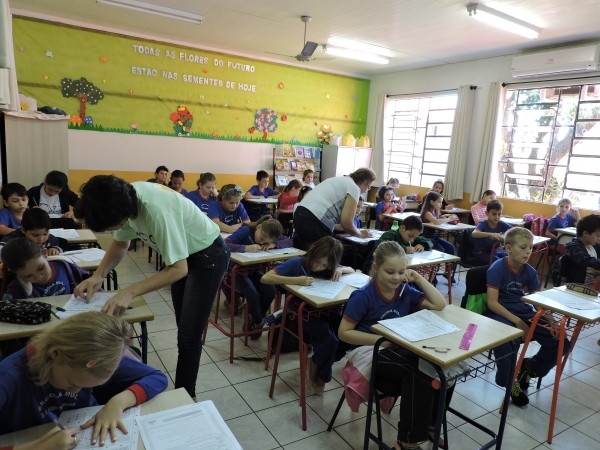 Os alunos do 4º ano da Escola Municipal Dona Leopoldina estão participando na manhã desta quinta-feira (01) da prova Hábile.