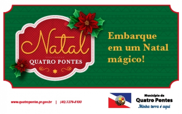 A Programação Natalina de Quatro Pontes terá sequência hoje (17). Às 20h30 acontecerá na Praça Cristo Rei o Musical “Natal por Todo Canto”. O evento será de muita música e emoção envolvendo alunos da Casa da Cultura. Todos estão convidados.